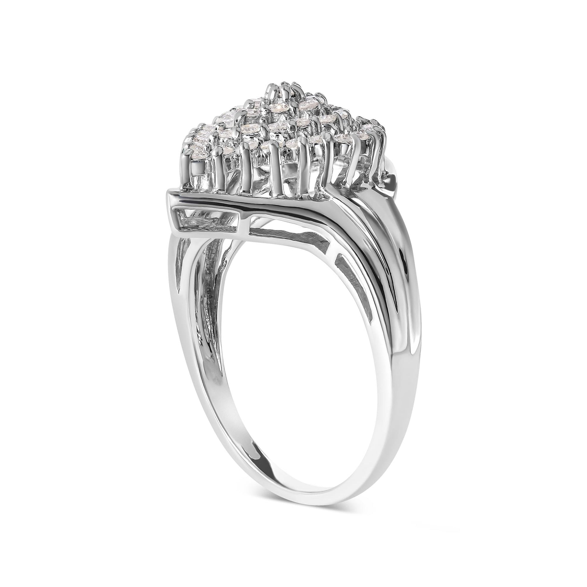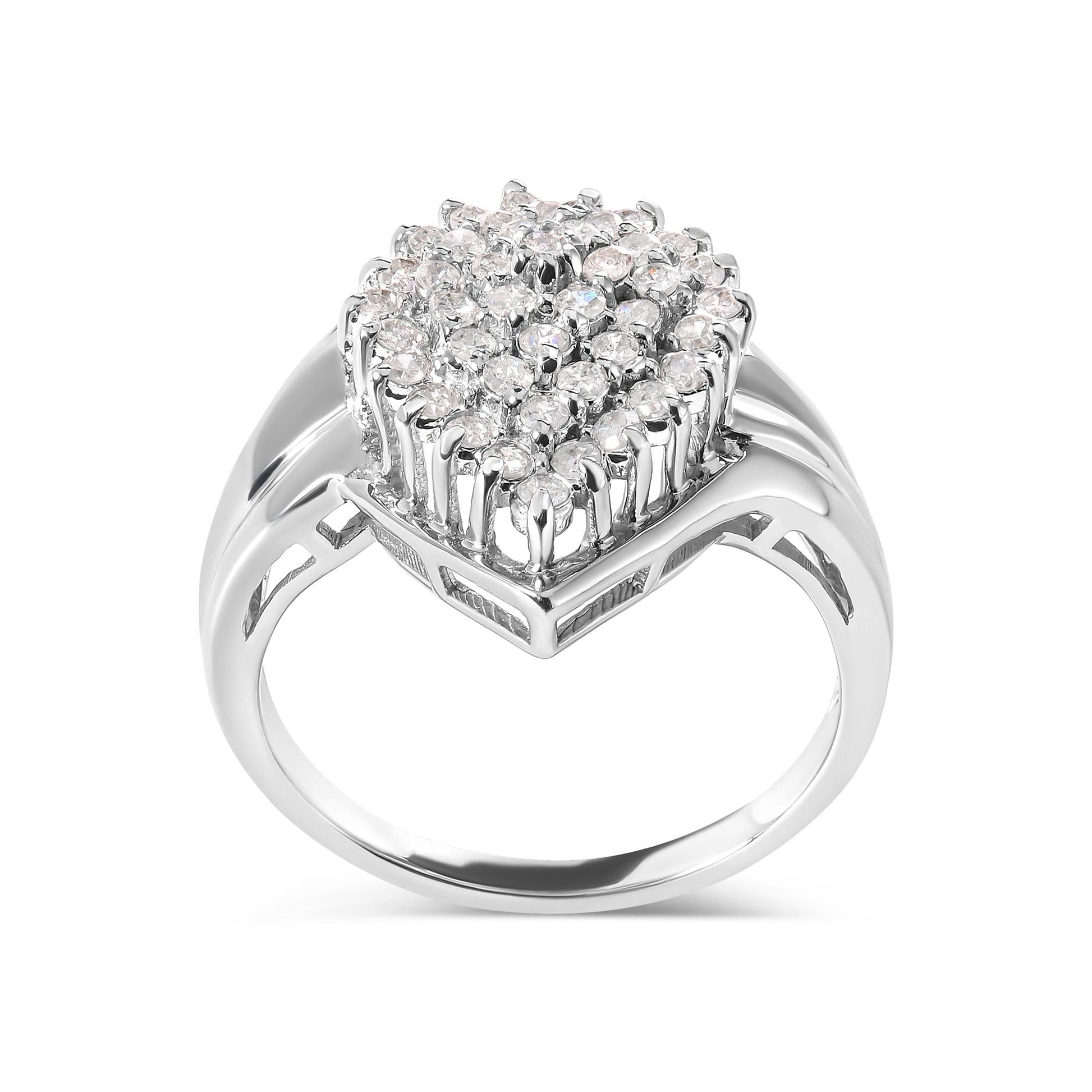 Unlock the secrets of timeless elegance with our 10K white gold diamond cluster ring. Delicately crafted in radiant white gold, this ring is a true masterpiece that exudes charm and sophistication. Be enchanted by the brilliance of 42 natural round diamonds, meticulously arranged in a captivating pear-shaped cluster. With a total weight of 1/2 carat, these diamonds shimmer with a mesmerizing allure. The H-I color grade ensures a radiant sparkle, while the I1-I2 clarity grade showcases the natural beauty of each diamond. Set securely in prongs, these diamonds capture and reflect light from every angle, creating an ethereal glow that will leave onlookers in awe. This fashion ring is a testament to individuality and style, designed to make a statement that is uniquely yours. Elevate any outfit with a touch of elegance and embrace the confidence that comes with wearing a piece that embodies grace and sophistication. Perfect for special occasions or as a daily reminder of your impeccable taste, this ring is a must-have addition to any jewelry collection.